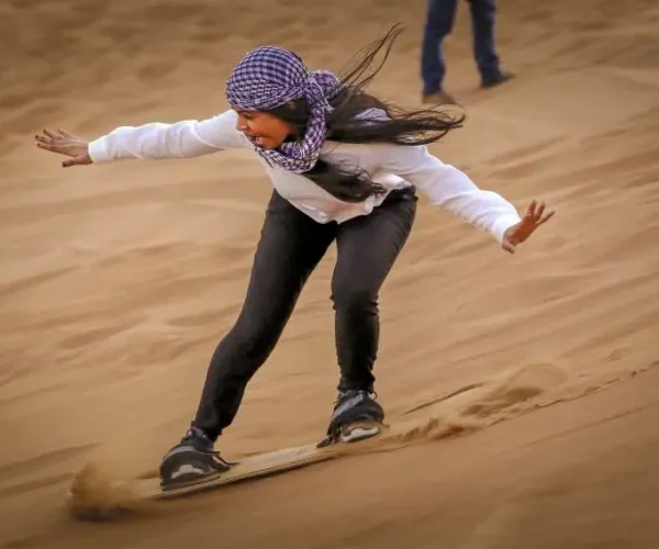 Morning visit to Miracle Garden; afternoon Desert Safari including Dune Bashing, Camel Riding, Sand Boarding, and a BBQ Buffet Dinner with a Fire Show.
